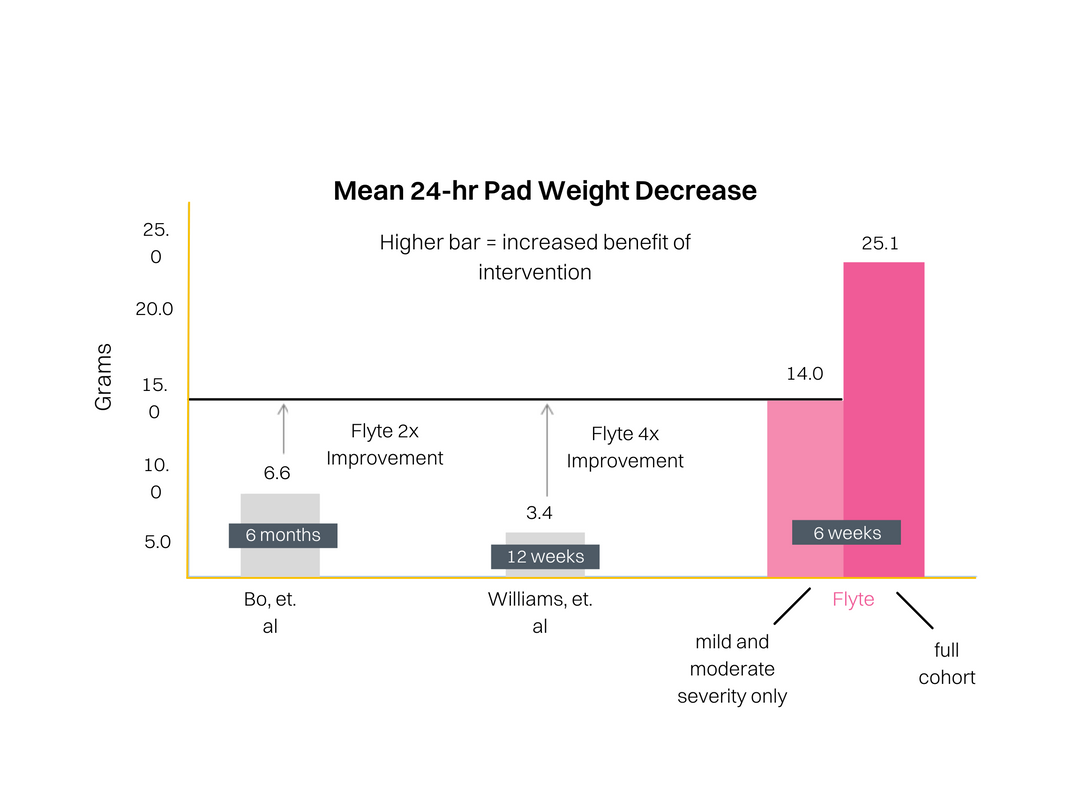 Here, Flyte is compared to the mean of two studies, which like our US Clinical Study, enrolled > 100 patients and used 24-hr pad weight as their measures.
